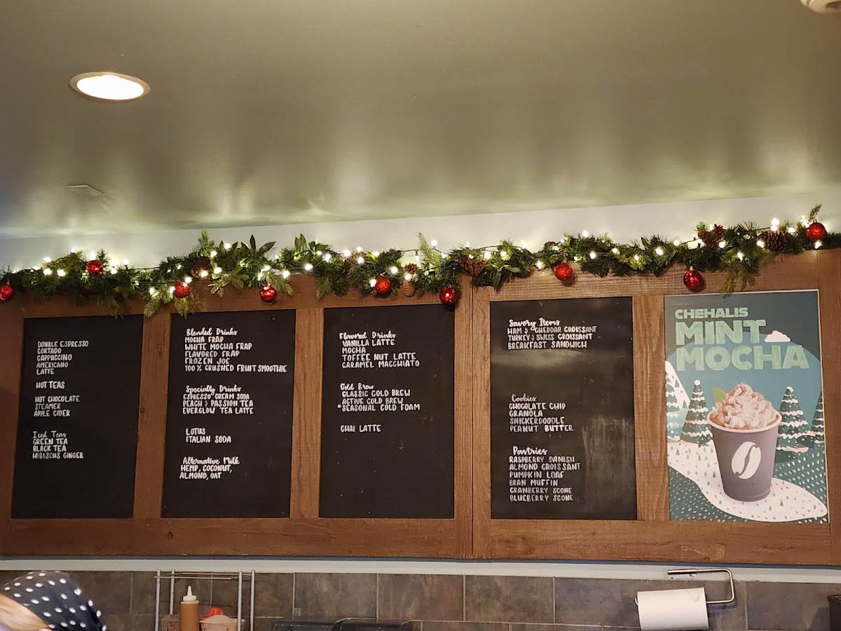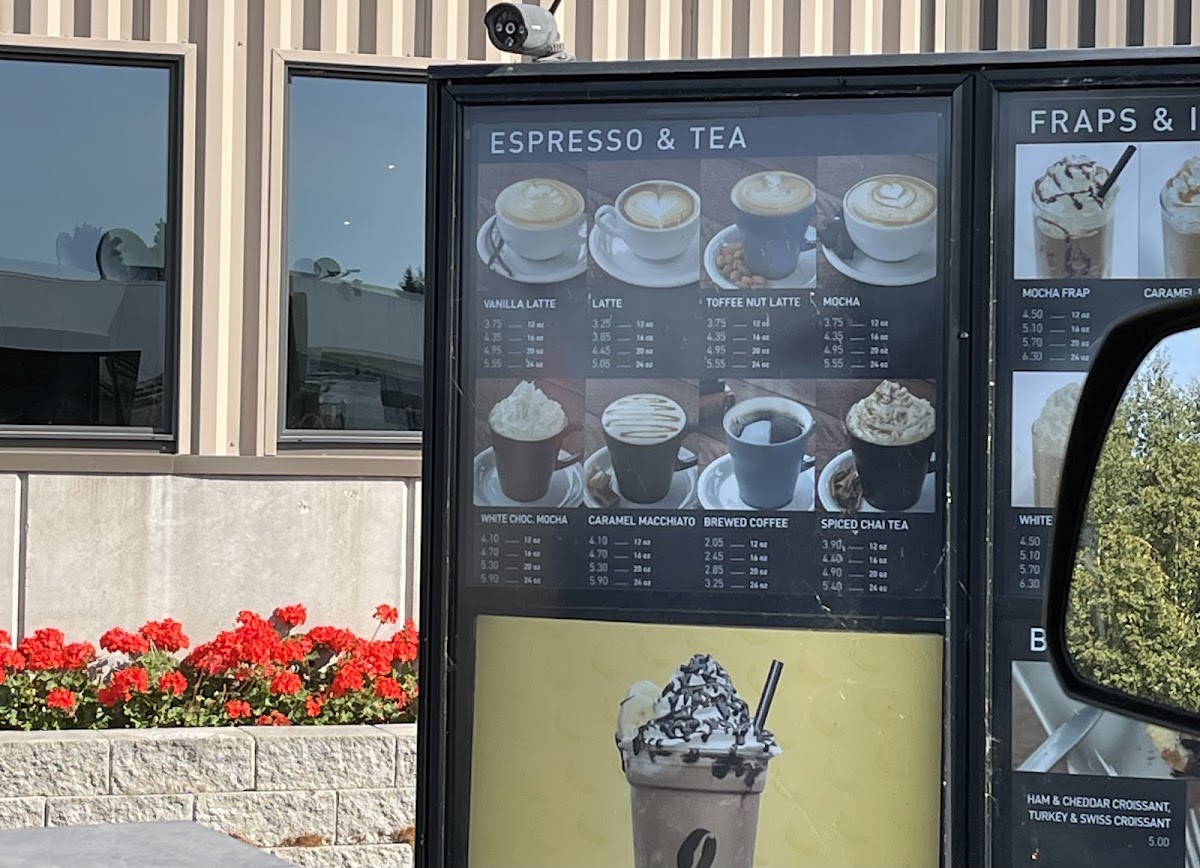 The drink menu includes smooth espresso-based options like the Pumpkin Pie Latte and Caramel Macchiato with extra caramel, along with simple, refreshing choices such as an iced coffee or a 12oz iced Americano. For those looking for something blended, options like the Mocha Frap and a 100% crushed fruit smoothie bring a bit of variety without straying from familiar flavors.